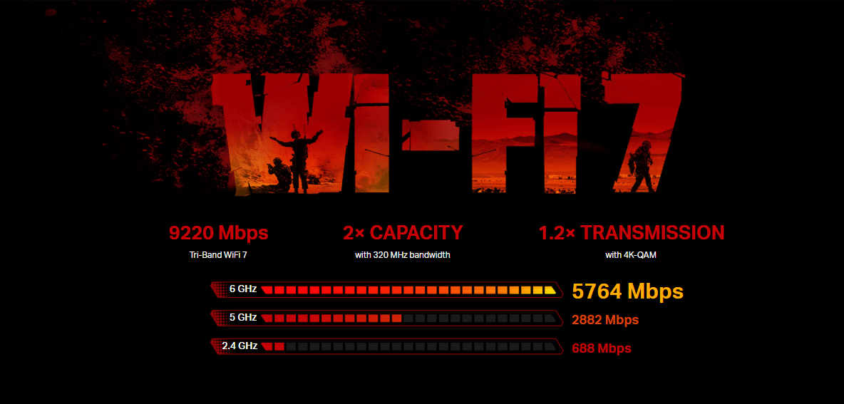 - Blazing-Fast Gaming Wi-Fi up to 9220 Mbps: Delivering 5764 Mbps on a 6 GHz band, 2882 Mbps on a 5 GHz band, and 688 Mbps on a 2.4 GHz band, Archer GE550 is always ready for the fiercest battles. Keep your game on track with the dedicated 5GHz gaming band, freeing you from competing with your family’s Netflix 4K streaming. †‡※