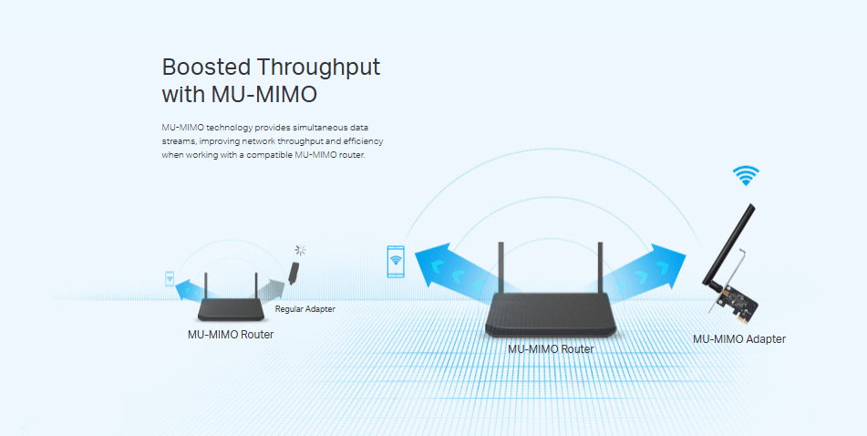 - MU-MIMO Supported – Boost network thoughput and efficiency when working with a compatible MU-MIMO router