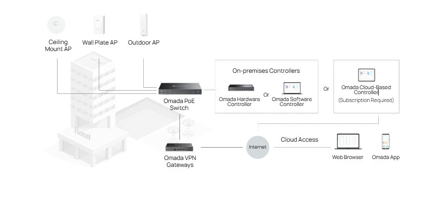 - Centralized cloud management via the web or the Omada app†